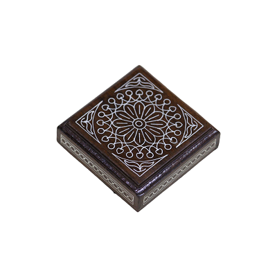 Our Solid wood paperweight that has FINE SILVER FLORAL INLAY on the front, & four sides and covered with black color velvet on the back for the soft touch.